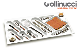 Новые итальянские лотки от Gollinucci для кухонных и столовых приборов изготовлены из высококачественного пластика и представлены в различных цветах и размерах, что позволяет легко вписать их в любое кухонное пространство независимо от стиля и габаритов мебели.