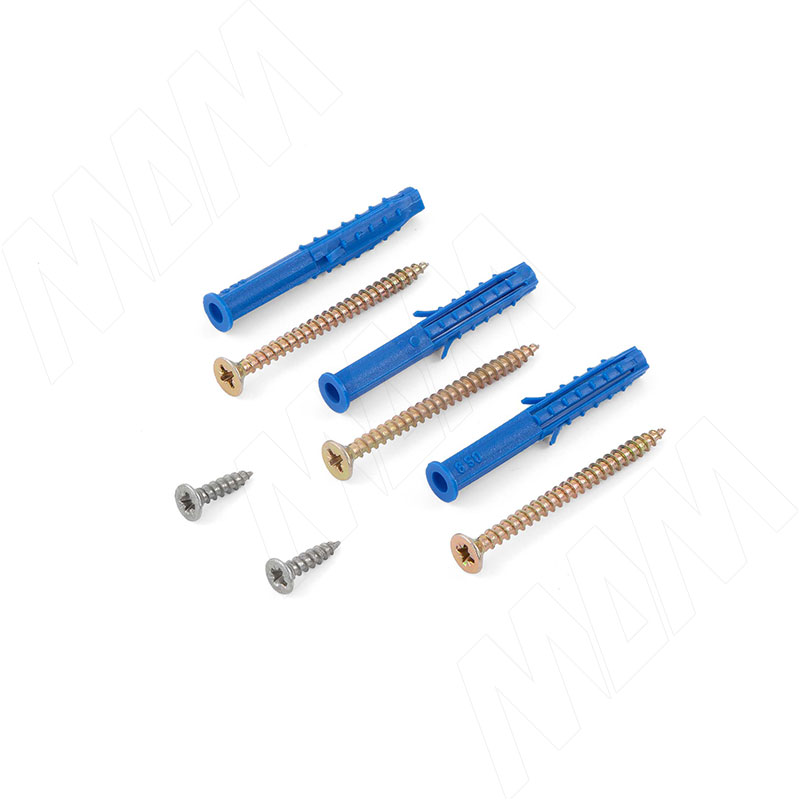 Комплектация: менсолодержатель, стоящий из двух частей, крепеж; дюбель 6×50 мм — 3 шт.; саморез 4×50 мм — 3 шт.; саморез 3,5×16 мм — 2 шт.