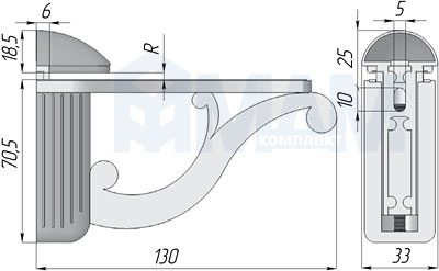Толщина полки (R) = 4-25 мм