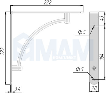 Менсолодержатель для деревянных полок L-220 мм, хром