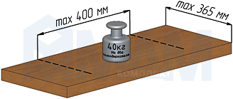 Максимальная глубина полки: до 365 мм при максимальной нагрузке