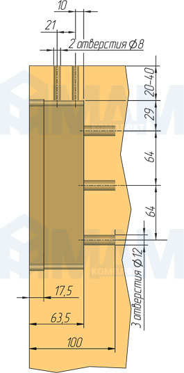 • устанавливается в боковину корпуса с минимальной толщиной 25 мм;
