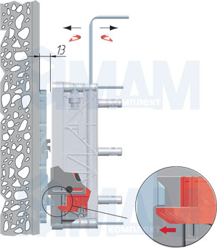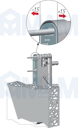 Регулировка: по высоте — 15 мм, по глубине — 13 мм (при регулировке навеса не использовать шуруповерт!)