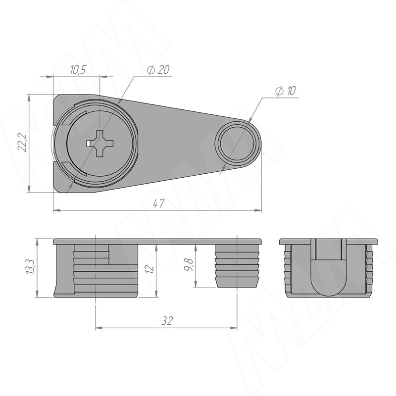 • в случае фиксации нижней полки эксцентрик можно затянуть сверху (для этого необходимо просверлить сквозное отверстие ∅8 мм в полке).