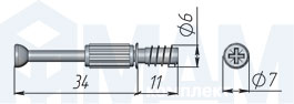 Шток эксцентрика евровинт с пластиковым элементом (34 мм)