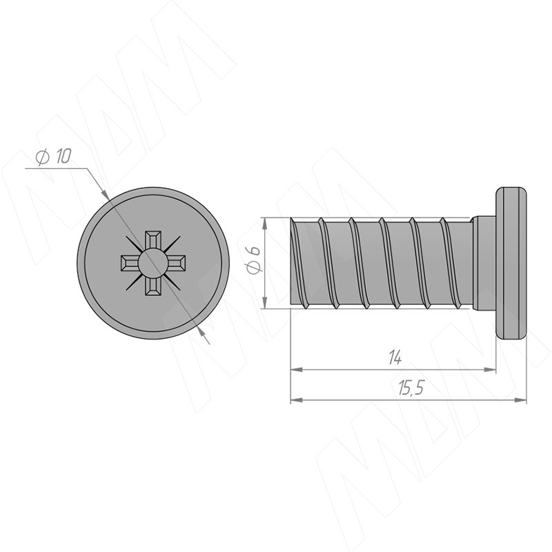 Размеры евровинта с плоской головкой 6x14 мм (артикул ES-6-0X14-0-FL-MP)