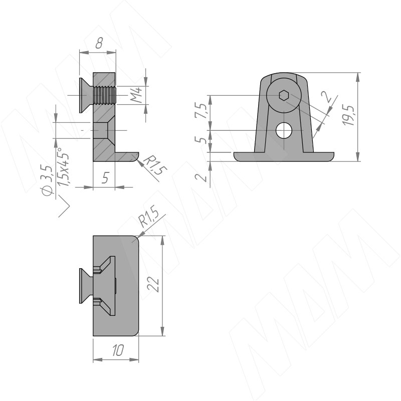 Размеры бокового крепления VERTIKO для алюминиевой полки (артикул VR02SC)