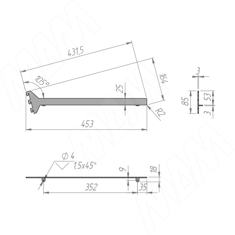 Применение: используется для установки наклонной деревянной полки на гардеробную систему