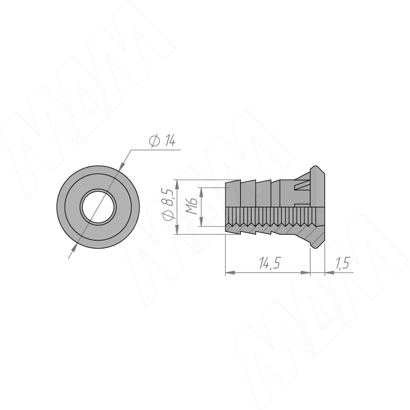 Размеры гайки М6 для мебельной ножки (артикул BP01/CH)