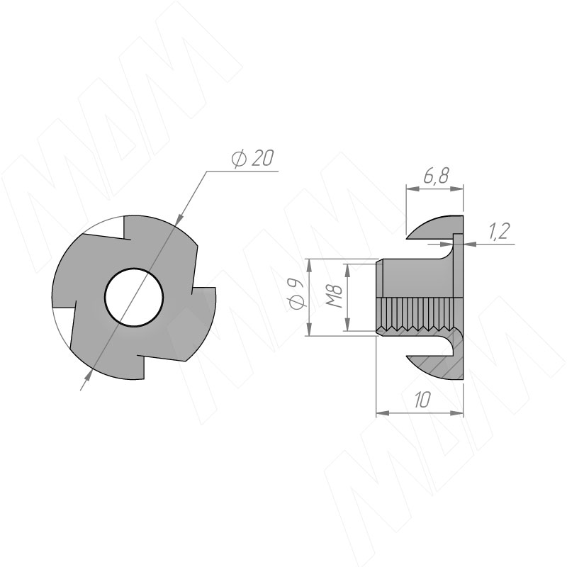 Размеры усовой гайки М8 (артикул C020)