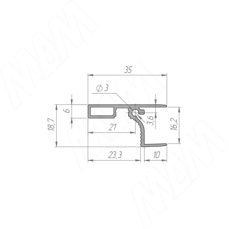GOLIGHT Профиль-ручка для верхней базы, под светодиодную ленту, алюминий матовый (анод), L-3000мм