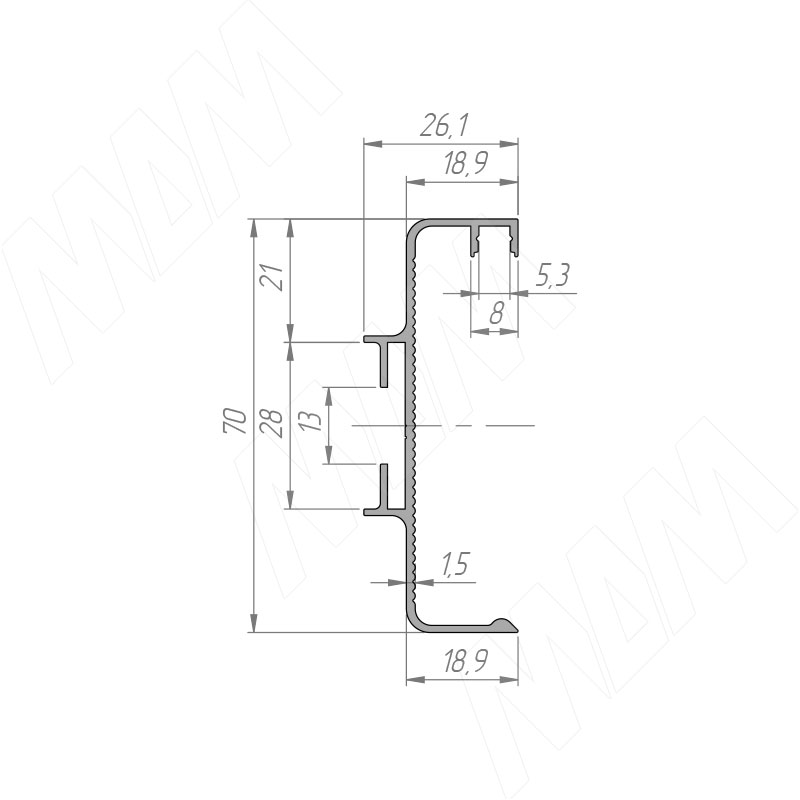 Размеры универсальной профиль-ручки GOLIGHT (артикул GL5.131.817)