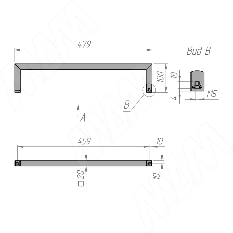 Размеры металлокаркаса полотенцедержателя 480х100х20 мм для тумб глубиной 480 мм (артикул MF.19.480х100х20)