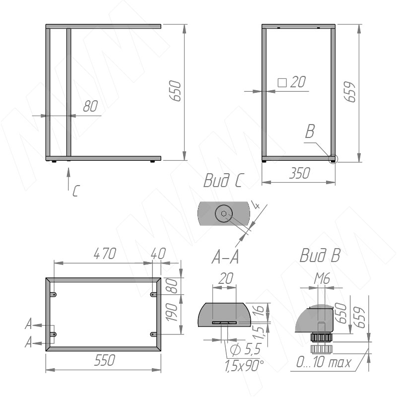 Металлокаркас-стол журнальный 550x350x650мм, черный (RAL 9005, муар) фото товара 5 - MF.07.550x350x650.BLC
