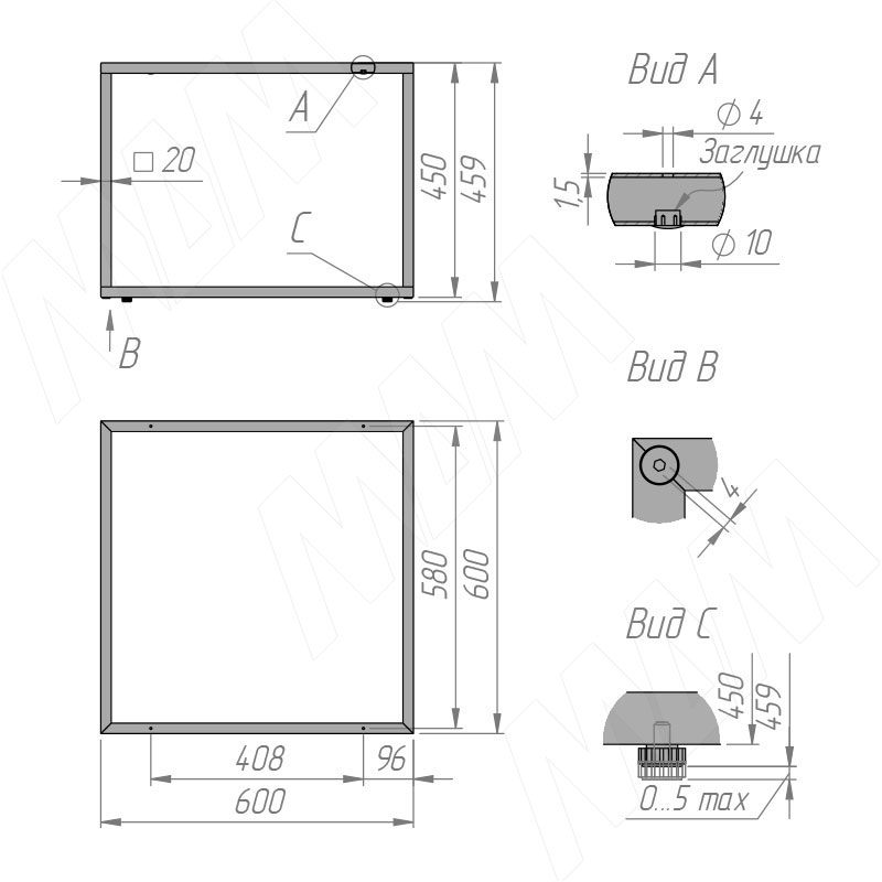 Размеры металлокаркаса журнального стола 600x600x450 мм (артикул MF.22.600x600x450)