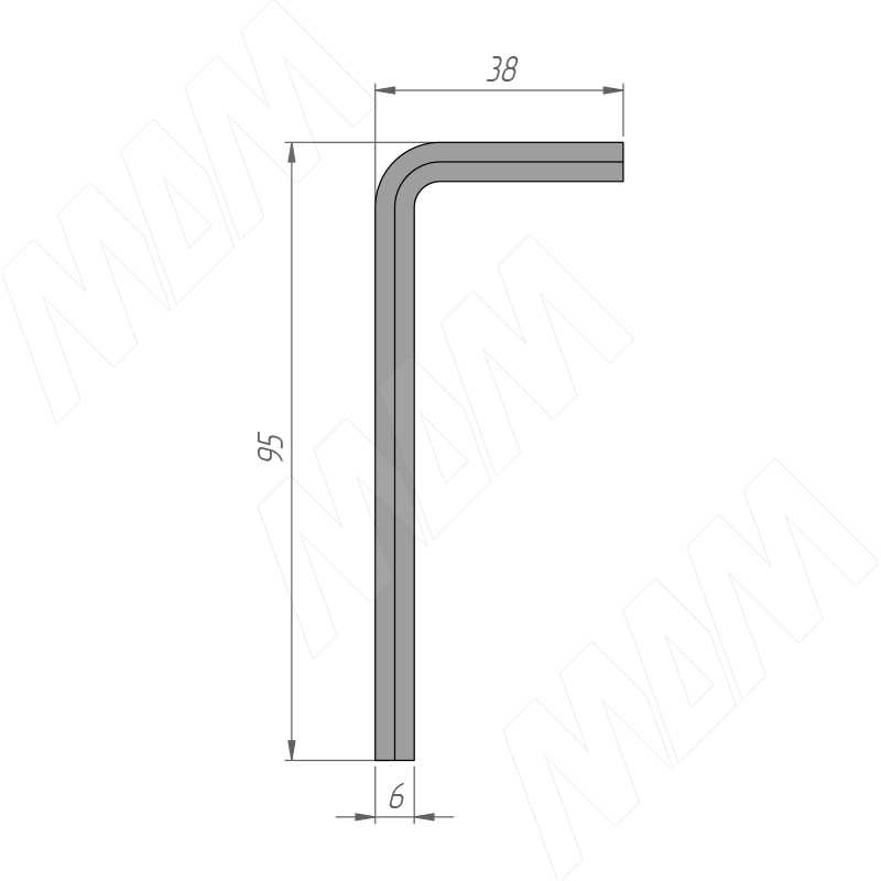 Размеры шестигранного L-образного ключа 6 мм (артикул 6HX-L MP)