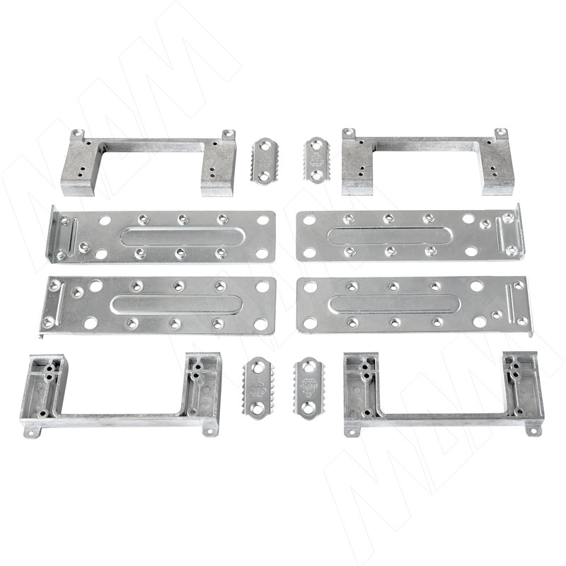 Комплектация: крепежные элементы для горизонтальных профилей — 4 шт., адаптеры для PS40 — 4 шт., все необходимые элементы для сборки одной двери и крепления к роликам