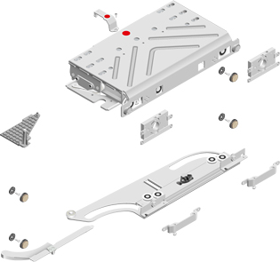 Комплектация: верхний ролик, верхний стопор, верхнее крепление для фасада — 2 шт., нижний ролик, нижний стопор, нижнее крепление для фасадов — 2 шт., угловой демпфер — 4 шт.