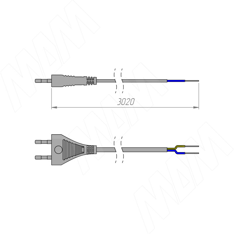 Размеры сетевого шнура длиной 3 м с вилкой S52 (артикул CWP-S-3-NO)
