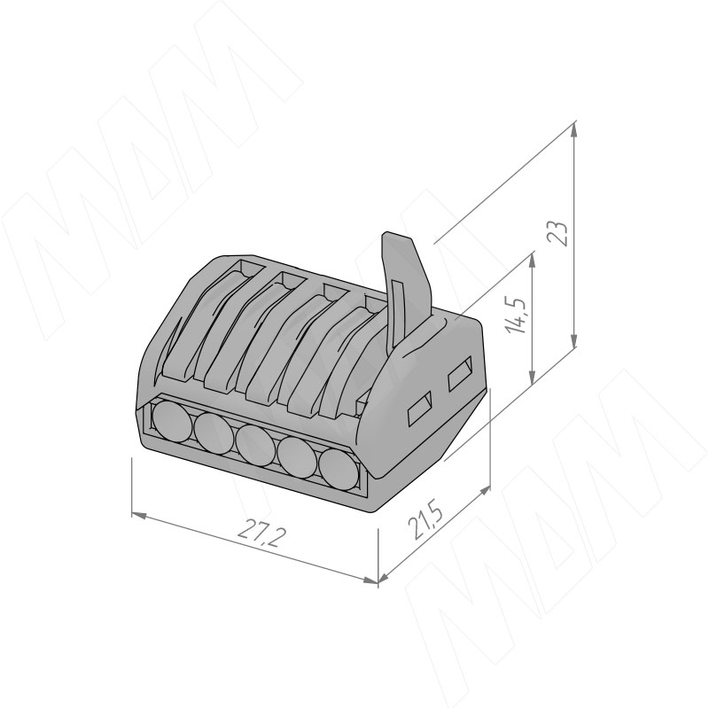 Размеры соединительной 5-контактной клеммы (артикул TML-5-OP-GR)Установка соединительной 5-контактной клеммы (артикул TML-5-OP-GR)