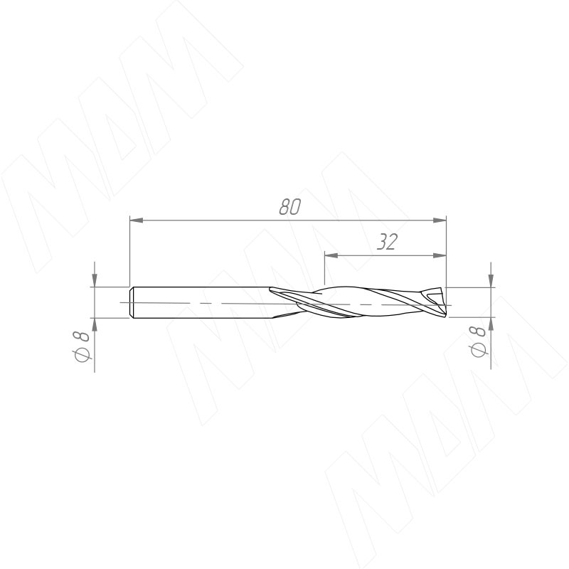 Фреза спиральная твердосплавная D8xL32, S8xGL80, Z2, Up/Rh, чистовая (по алюминию)