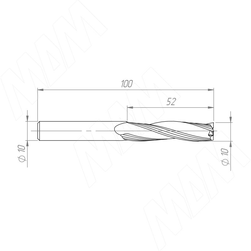 Размеры спиральной твердосплавной фрезы D10xL52, S10xGL100, Z3, Up/Rh чистовой (артикул KF-113-10-52-10)