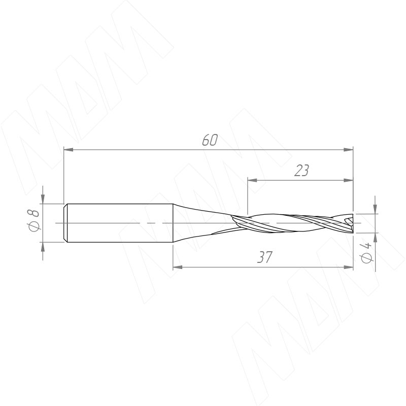Фреза спиральная твердосплавная D4xL23, S8xGL60, Z2, Up/Rh, чистовая
