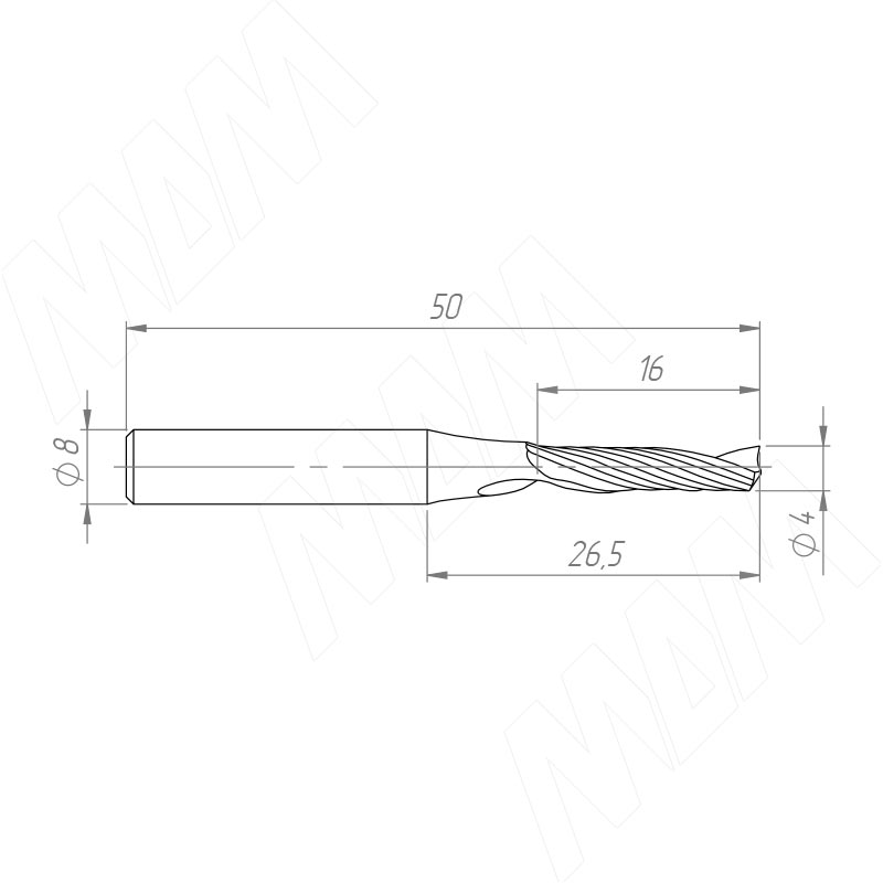 Фреза спиральная твердосплавная D4xL16, S6xGL50, Z1, Up/Rh, чистовая (по пластикам)