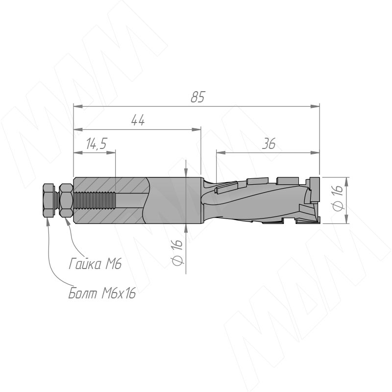 Купить алмазная концевая фреза d=16мм, b=34мм, l=85мм, s=16мм, b=2,5мм, z1+1 оптом и в розницу в городе Москва.