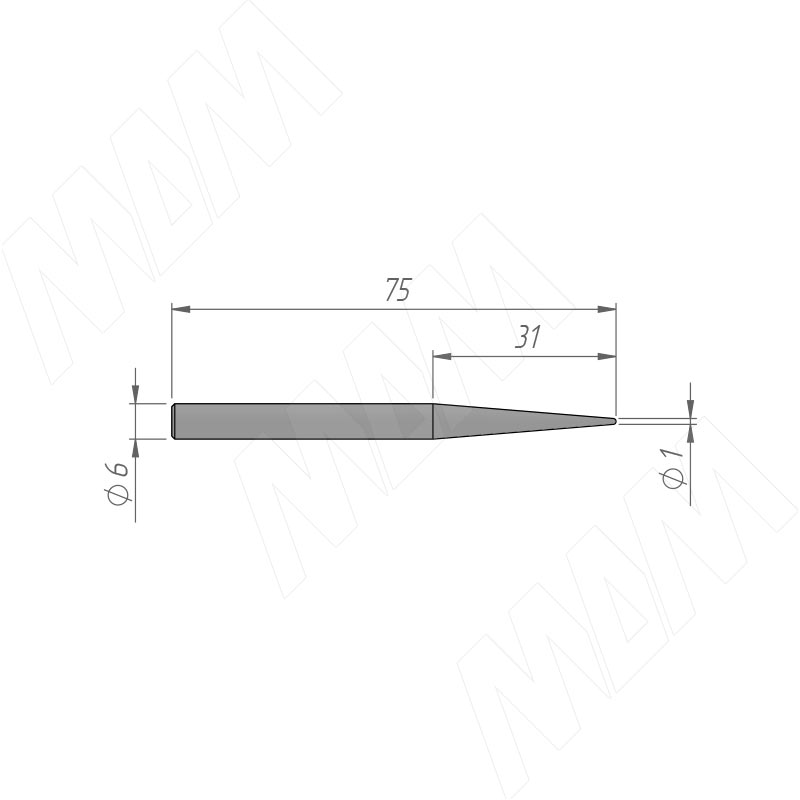 Размеры фрезы гравировальной D=1, CL=30,5, SD=6, TL=75, Z=2 (артикул TBN1-30.5S675Z2)