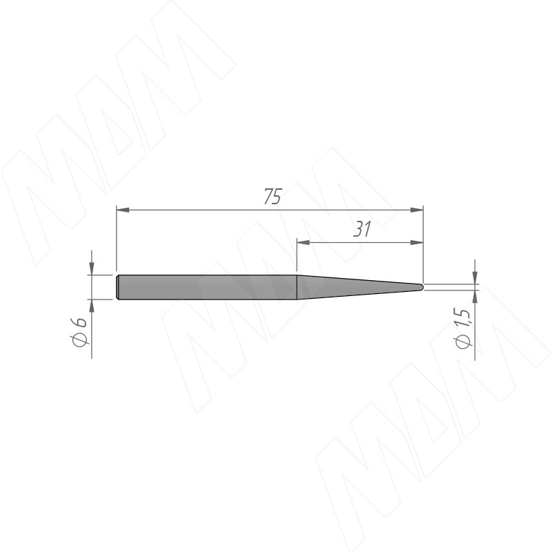 Размеры фрезы гравировальной D=1,5, CL=30,5, SD=6, TL=75, Z=2 (артикул TBN1.5-30.5S675Z2)