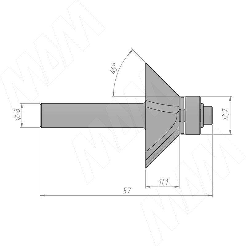 Фреза для обработки фасок H=11.10, S=8, Z=2, ? = 45