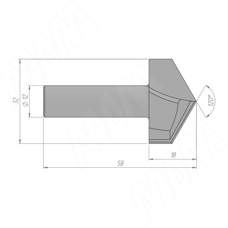 Фреза профильная V образная 120° D=32 H=18, S=12, Z=2, ? = 120