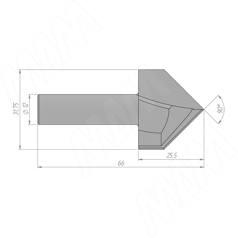 Купить фреза профильная v образная 90° d=31,75 h=25,5 s=12, z=2, ? = 90 оптом и в розницу в городе Москва.
