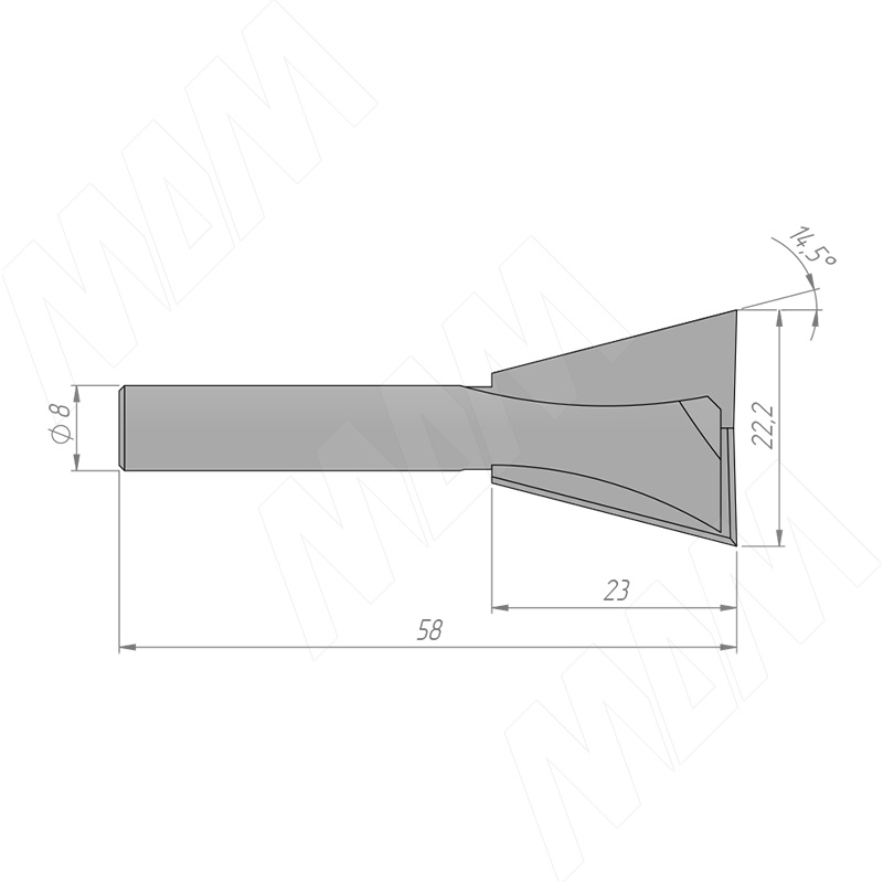 Фреза «ласточкин хвост» D=22,2 H=23 S=8 Z=2, ? = 14° 30?