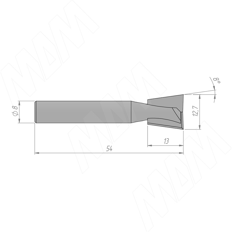 Фреза «ласточкин хвост» D=12,7 H=13 S=8 Z=2, ? = 8