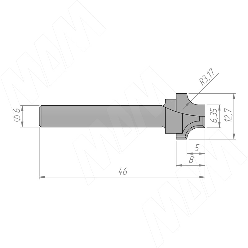 Фреза профильная D=12,7 d=6,35 H=8 S=6 Z=2 R1=3,2