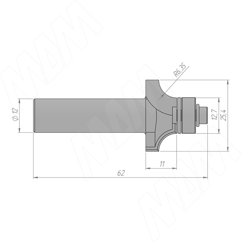 Фреза профильная с нижним подшипником D=25,7 H=11 S=12 Z=2 R1=6,35, подшипник 12,7