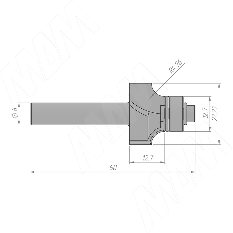 Фреза профильная с нижним подшипником D=22,2 H=12,7 S=8 Z=2 R1=4,76, подшипник 12,7