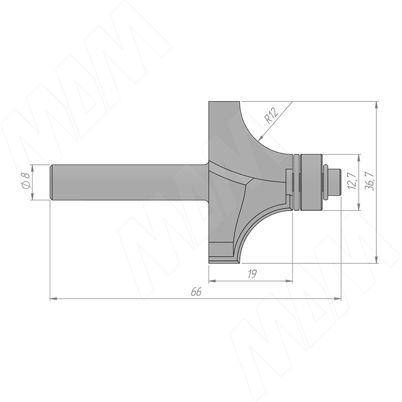 Фреза профильная с нижним подшипником D=36,7 H=19 S=8 Z=2 R1=12, подшипник 9,5