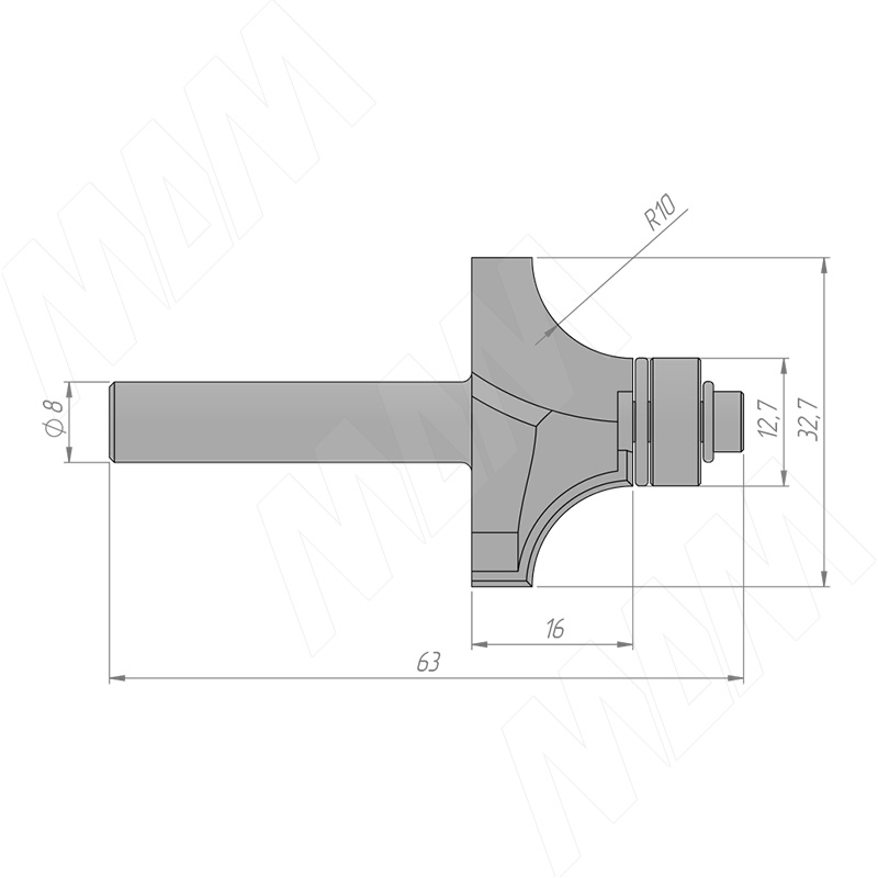 Оставьте свой отзыв о товаре: Фреза профильная с нижним подшипником D=32,7 H=16 S=8 Z=2 R1=10, подшипник 9,5 (C117-32-16S8)