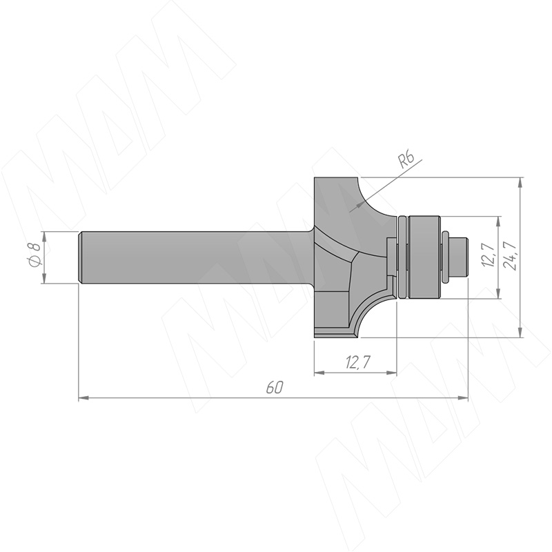 Фреза профильная с нижним подшипником D=24,7 H=12,7 S=8 Z=2 R1=6 подшипник 9,5