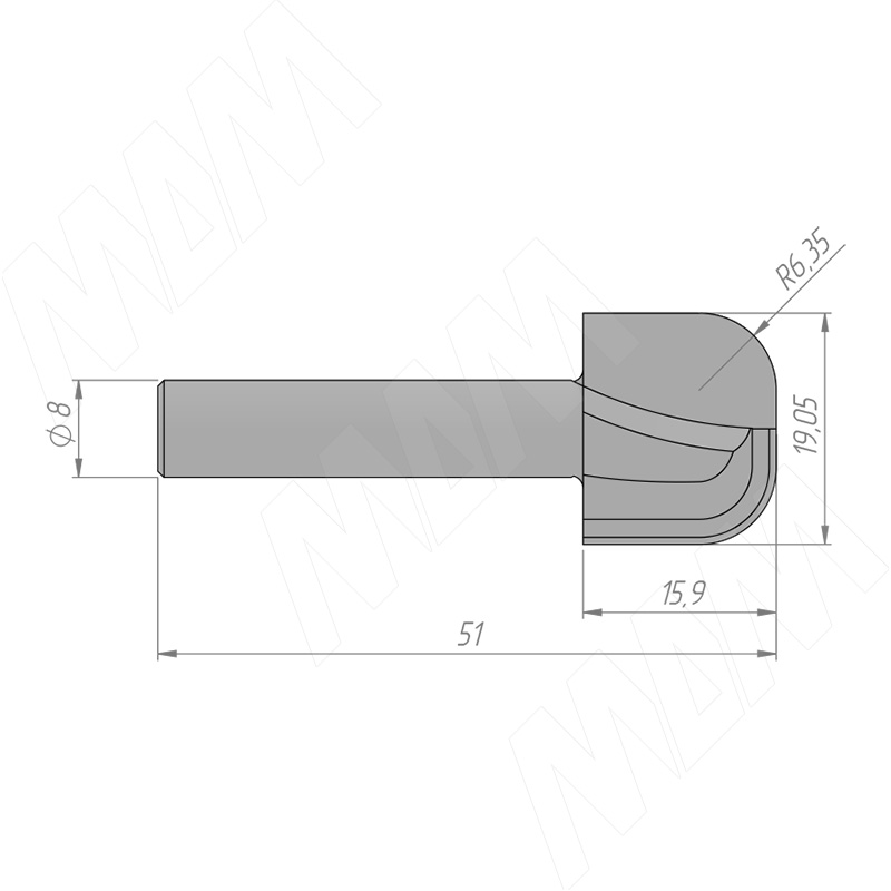Фреза профильная D=19,05 H=15,9 S=8 Z=2 R1=6,35