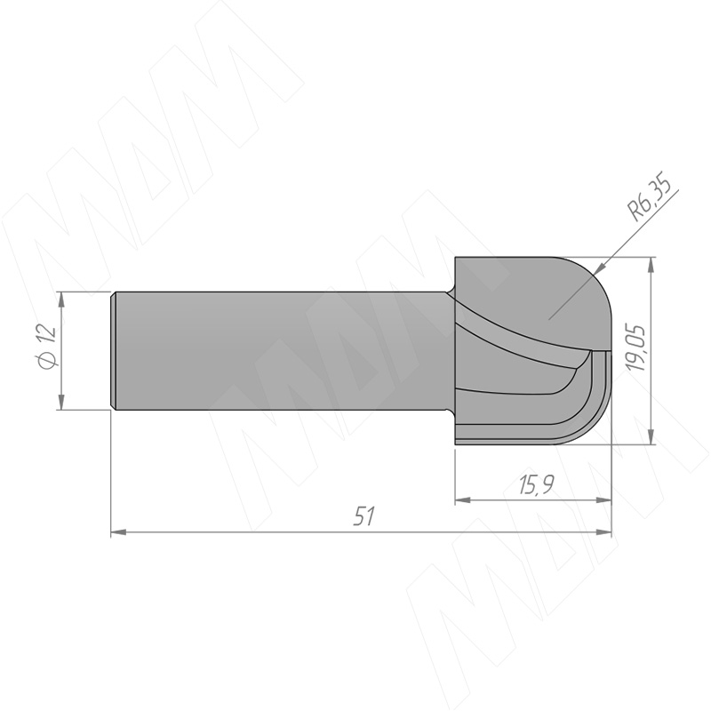 Фреза профильная D=19,05 H=15,9 S=12 Z=2 R1=6,35