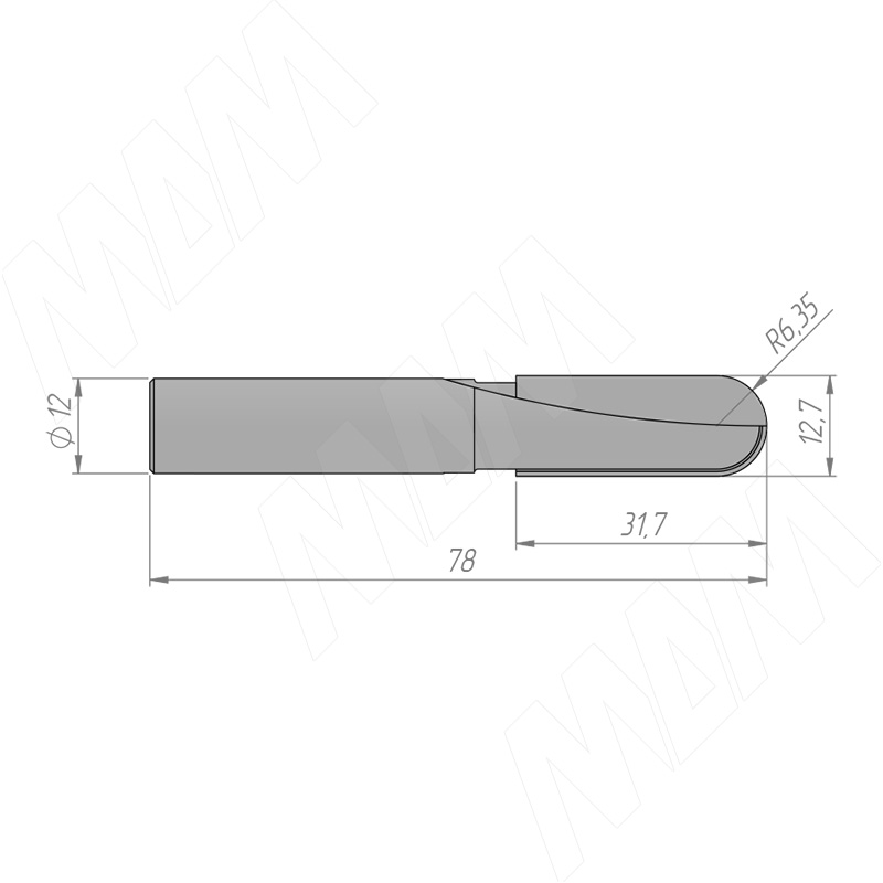 Фреза профильная D=12,7 H=31,7 S=12 Z=2 R1=6,35