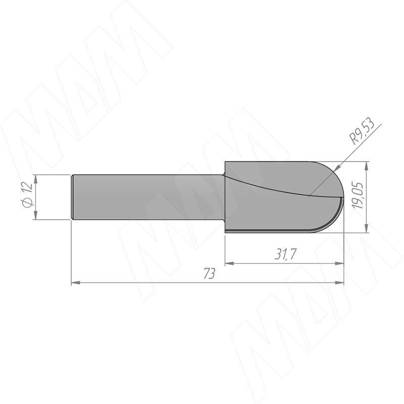 Фреза профильная D=19,05 H=31,7 S=12 Z=2 R1=9,52