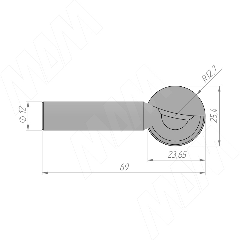 Размеры фрезы профильной D=25,4 H=23,65 S=12 Z=2 R1=12,7 (артикул C114-25-23S12)