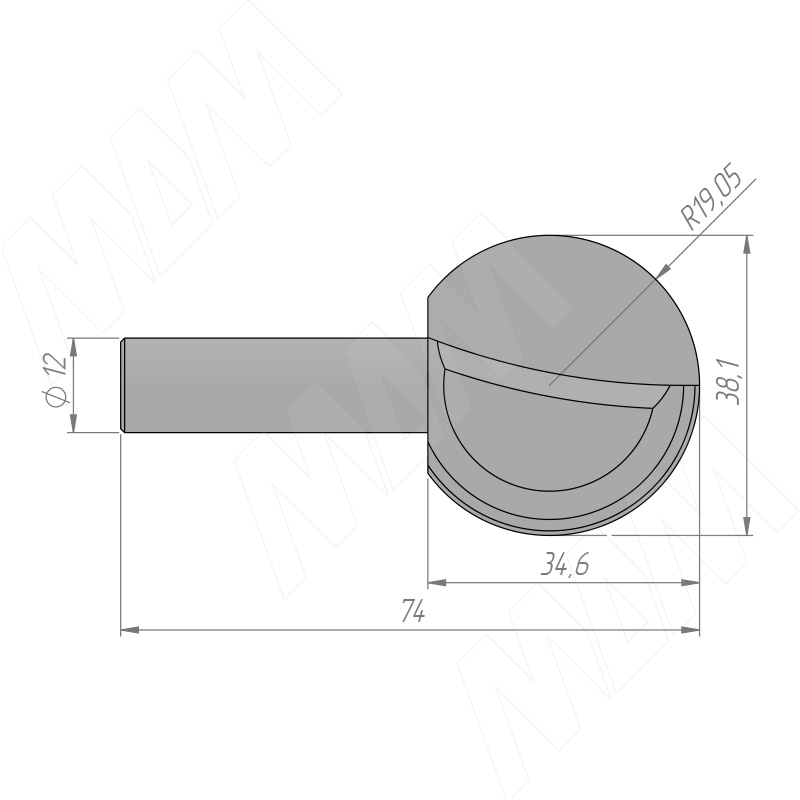 Размеры фрезы профильной D=38,1 H=34,6 S=12 Z=2 R1=19,05 (артикул C114-38-34S12)
