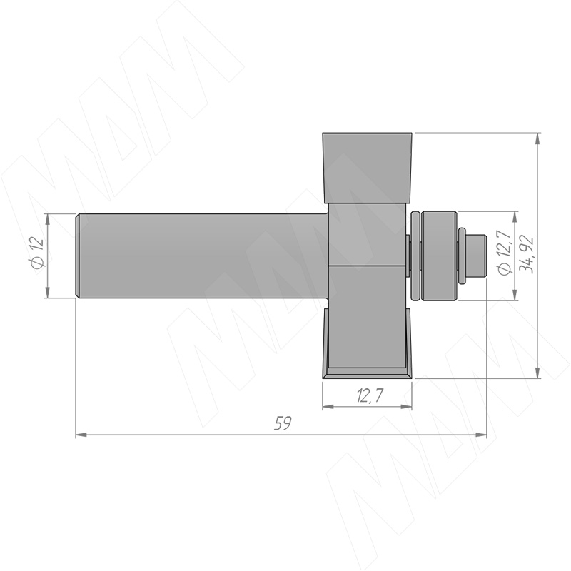Размеры фрезы для выборки четверти D=34,92 H=12,7 S=8 Z=2 подшипник 12,7 (артикул C121-34-12S8)