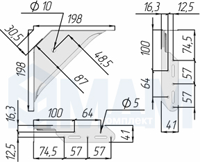• отверстие М10 позволяет крепить регулируемые, декоративные и колесные опоры.
